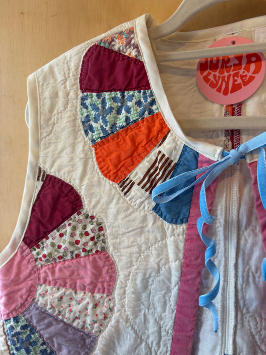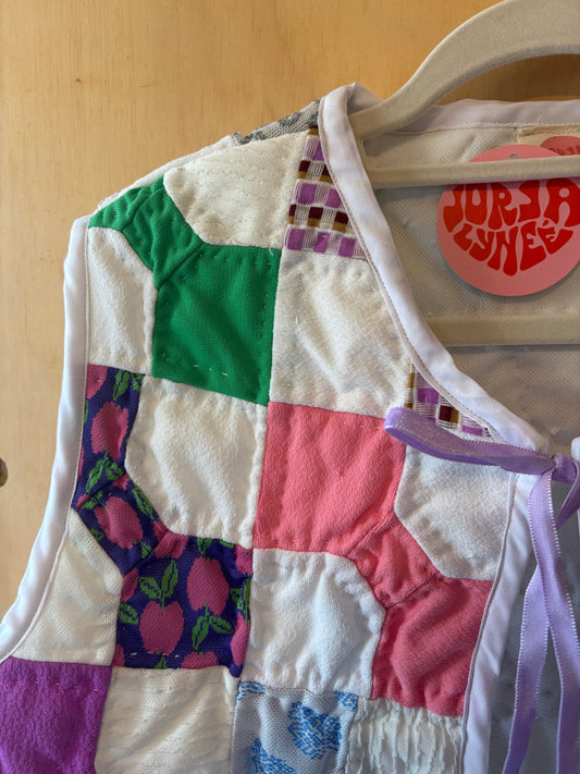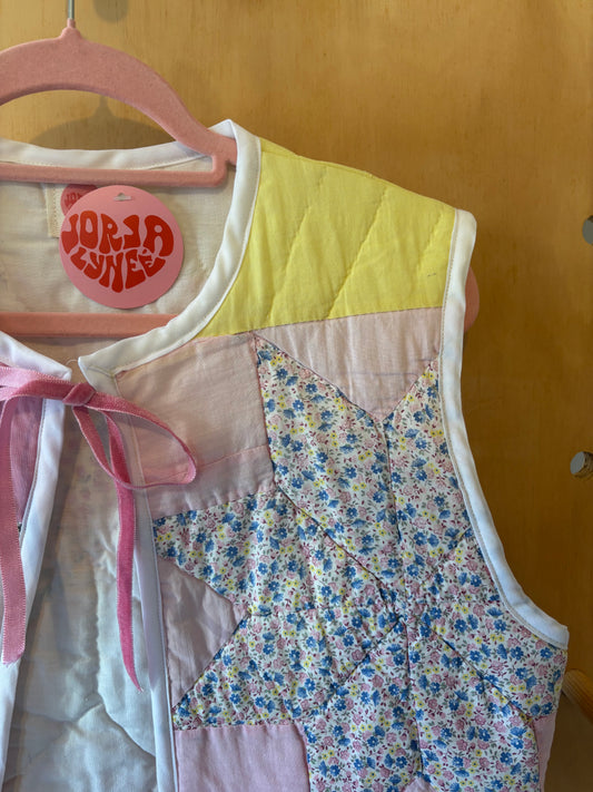 Pink and Yellow Star Quilted Vest with Pink Bow