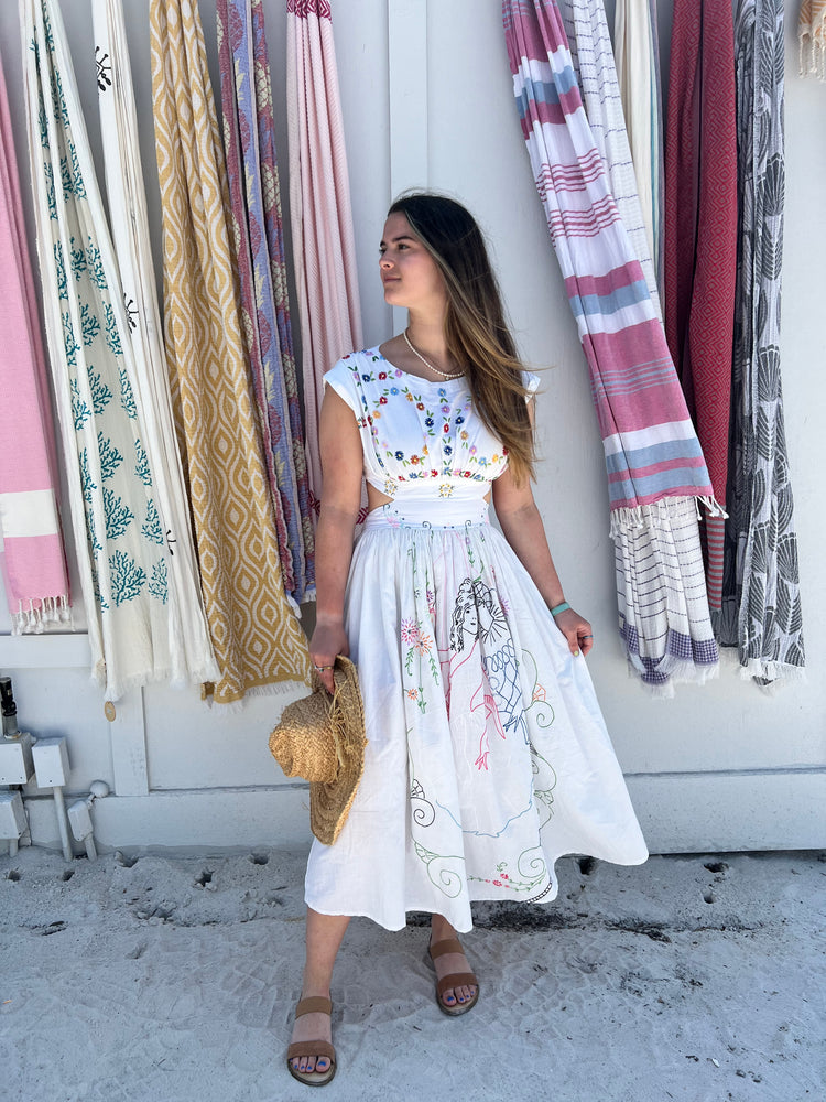Designed and constructed from a vintage embroidered and lace tablecloths.