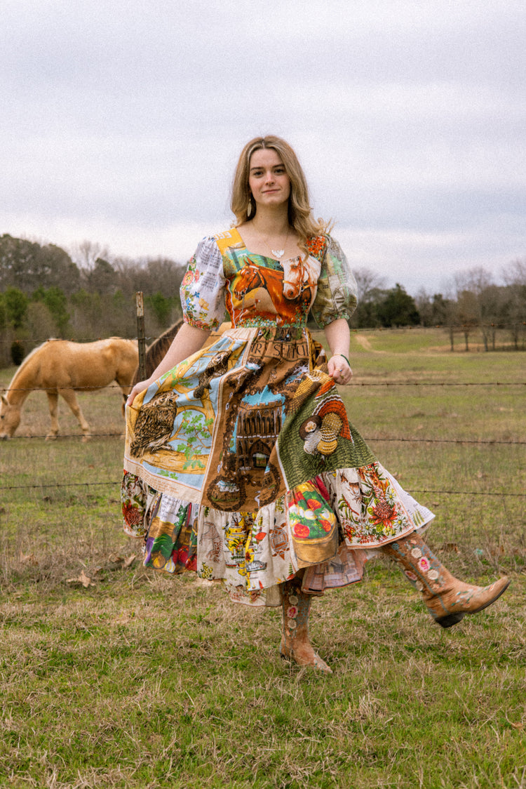 Designed and constructed from a collection of vintage calendar tea towels and linens.