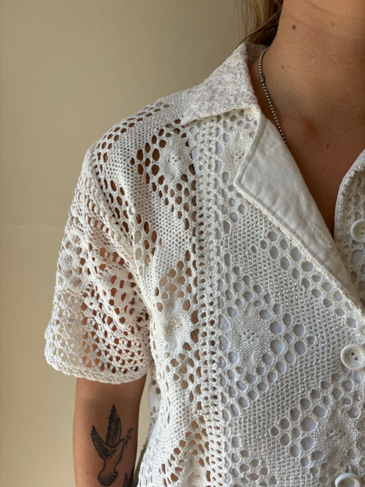 M/L Diamond Floral Design Crochet button-down