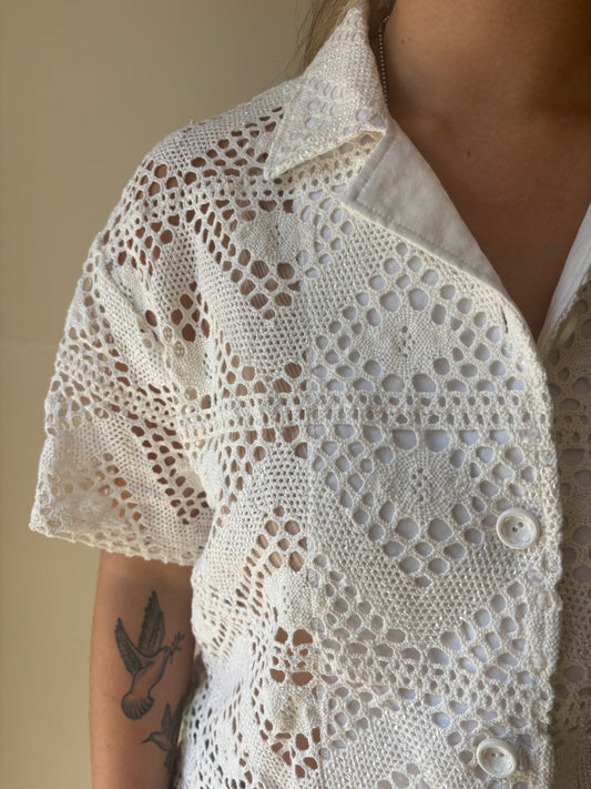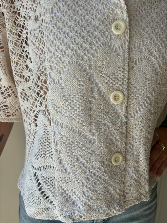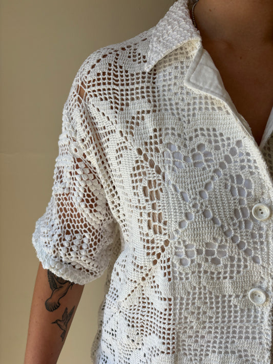 S/M Heart Crochet button-down